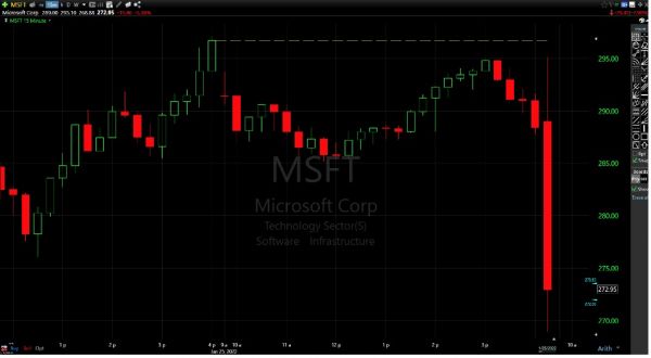 微软周二盘后一度大跌近6%,图片来自shacknews
