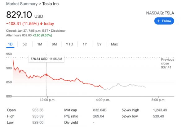 虽然特斯拉股价在财报会结束后,盘后交易V形反转收复失地,但由于供应链危机造成的消极情绪以及特斯拉本身超高估值的回调压力下,在周四的交易日中,特斯拉大跌超过了11%。