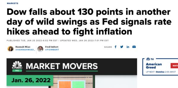 本月以来,市场的持续动荡跟美联储此前一系列的“鹰派”表态密切相关,大家都对提前美联储提前加息和启动缩表的动作充满担忧。本周三,牵动万千投资者心绪的美联储一月例会也准时召开。果不其然,鲍威尔一席话之后,当天本来还气势高昂的美股,瞬间就转头向下。