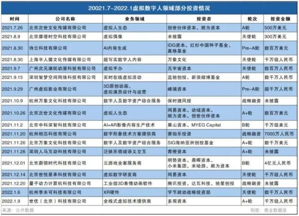 近期虚拟人赛道核心融资项目
