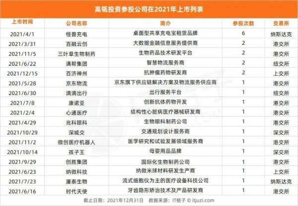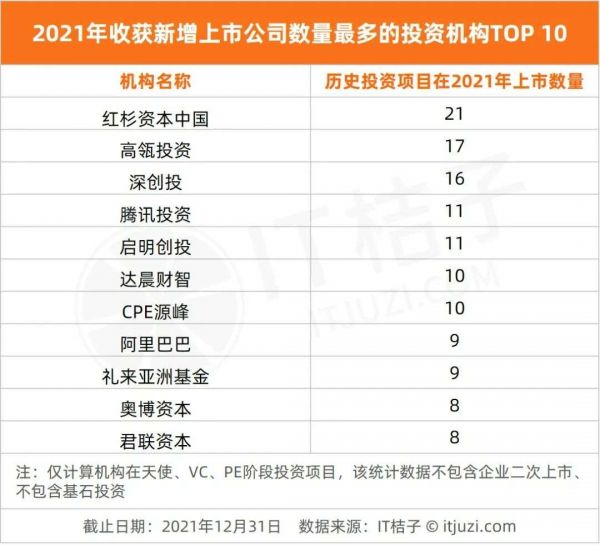 2021年收获IPO最多的投资方大排行:红杉中国、高瓴仍盘踞高位