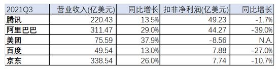 腾讯、阿里、美团、百度、京东的扣非净利润都出现了不同程度的下降。其中,美团还“转盈为亏”了。