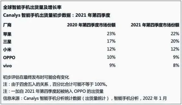 值得注意的是,不仅仅在财报中,在市场层面,依靠iPhone 13系列,苹果也在三个季度后重新坐回智能手机市场的头把交椅,在2021年Q4以22%的市占比力压20%市占比的三星。