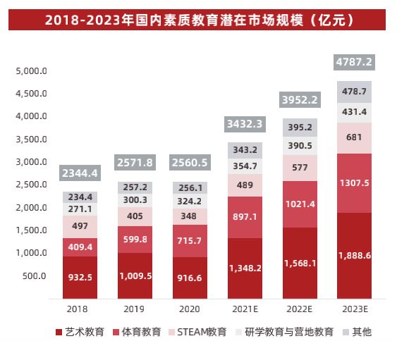 积极的政策导向之下,素质教育行业供需侧发生变化,市场规模愈发庞大。