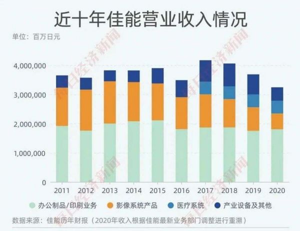 不过,佳能的印刷机业务的一大问题就是增长见顶,过去十年,一直在2万亿日元上下来回,增长乏力。