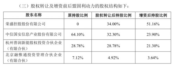 按照当时的转让协议,荣盛控股先是以23.22亿元的价格收购了中信国安盟固利动力34%的股权,并通过24亿元的增资扩股,实现对中信国安盟固利51.16%的股权持有,成为公司控股股东。