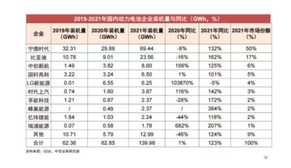 第二梯队包括中创新航、国轩高科;