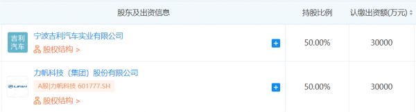 一个月后,力帆与吉利联合宣布,双方将会各出资3亿元、以50:50的股比成立合资公司。据企查查数据显示,在本月成立的睿蓝汽车,其股东正是吉利汽车和力帆集团。