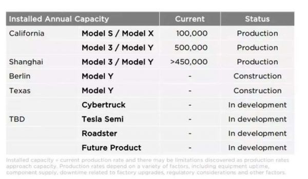 特斯拉各工厂产能 图源|特斯拉财报