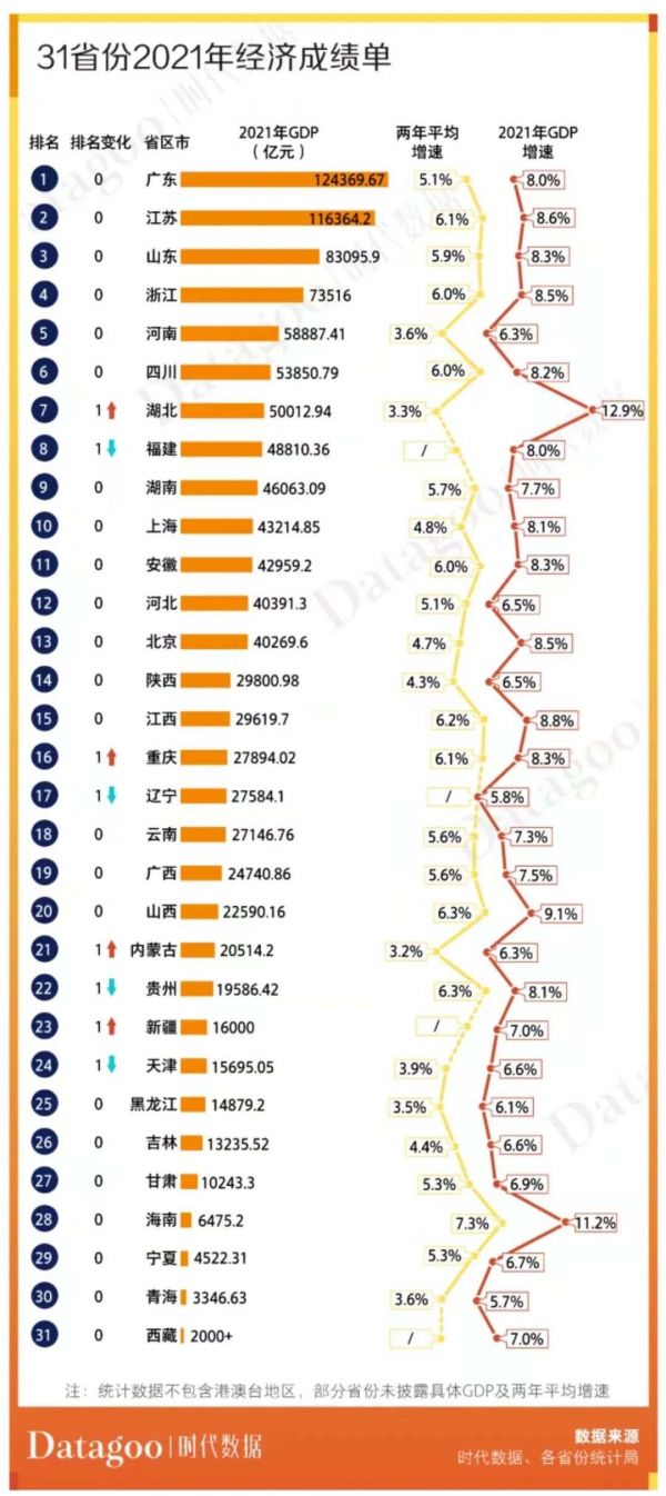 全国31个省份的2021年经济数据已全部出炉。GDP处于四万亿区间的省份共有6个,安徽首次位列其中。