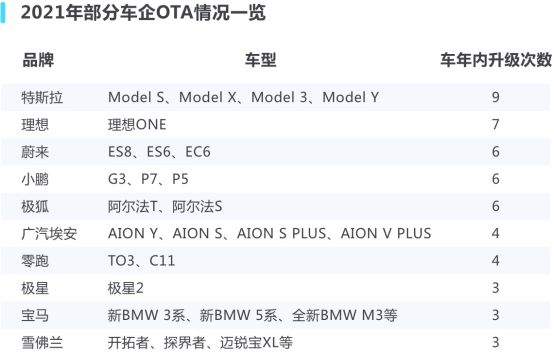 2021年哪家车企OTA最频繁?
