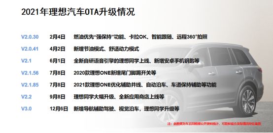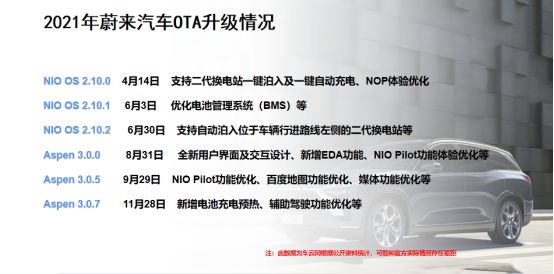 通过特斯拉和蔚小理在2021年的OTA升级情况,可以管窥一斑。