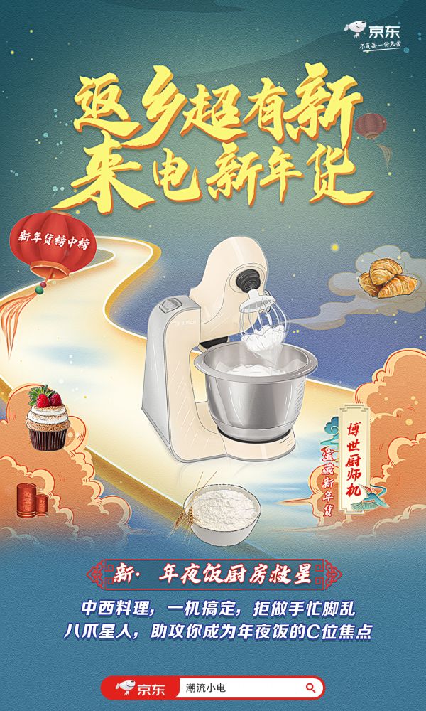 例如,京东在网上打造年味儿浓厚的“抢年货,过大年”“年货合家欢”等各种特色活动;联动农村农产品生产基地,解决因疫情、交通等原因滞销的农产品年货;同时推出“过年不打烊”“同舟计划”等,积极响应国家“就地过年”号召,进一步带动了小家电的需求增长。