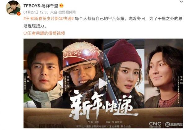 另一种猜测是为了更合理分配大咖明星的戏份。例如《新年快递》因集结了杨幂、李现、易烊千玺等几位大咖,就需要将故事体量拉长,以“男一号”快递小哥长途跋涉送快递的公路电影拍法,把大咖们分别放置于不同时间节点扮演男主偶遇的“王者荣耀玩伴”。