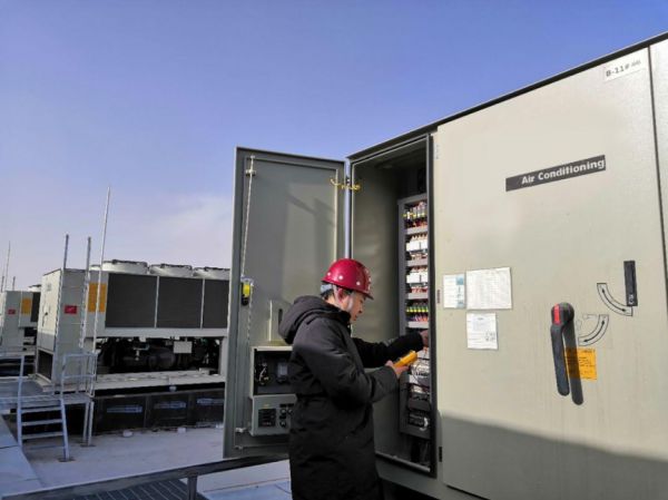 阿里云的太佑在室外巡检风冷冷水机组