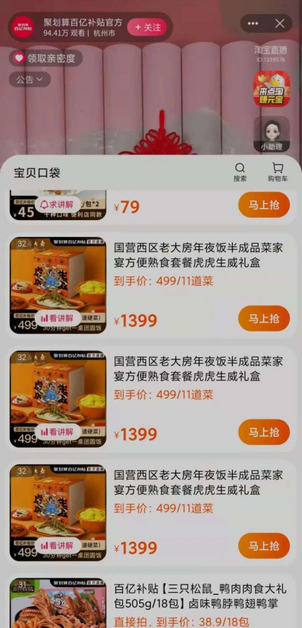 “599元12道菜,就算你是厨房小白,20分钟便能搞定一桌年夜饭。”这是90后李玥正在发愁如何搞定今年年夜饭时,无意间在直播间听到的主播介绍。