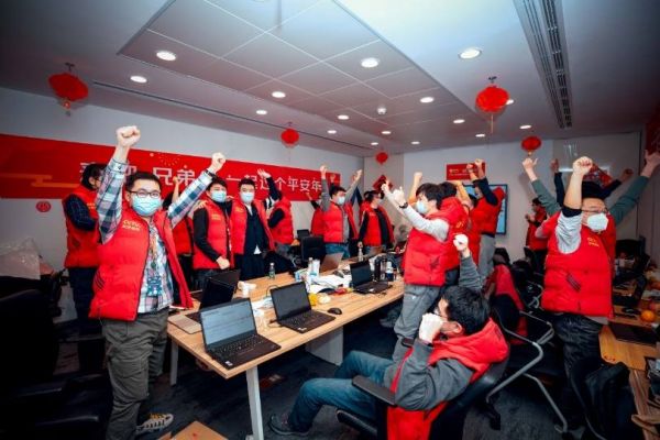 除夕当天参与一线值守的京东云技术人员欢庆圆满完成任务