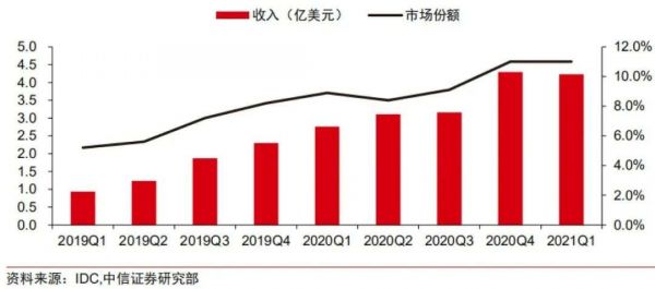 中信证券在研报中提到,华为云是全球最大的电信设备商,以及全球领先的IT设备商,在渠道、交付服务方面充分融合了原有ICT设备的优势。