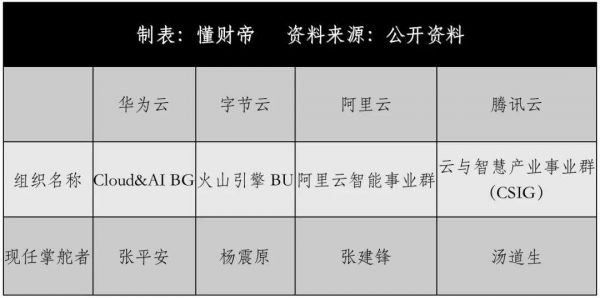 由于之前,懂财帝已在多篇文章中分析过阿里云、腾讯云,因此,本文将主要聚焦华为云、字节云,试图与读者们探讨: