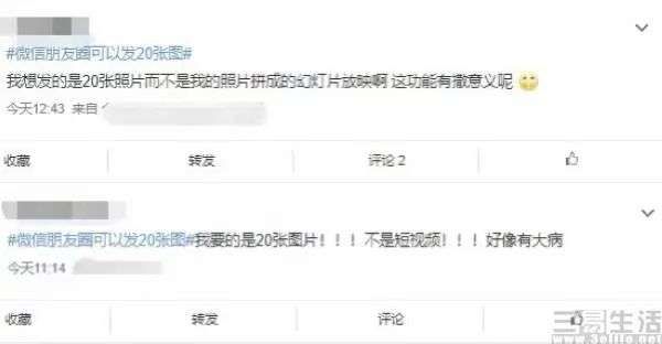 当然,针对朋友圈图片“变”视频这一功能,也有部分网友表示十分鸡肋。其中就有人指出,“需要的是发20张图,而不是照片拼成的幻灯片放映”,同时也有人则给朋友圈的这一功能提出了建议,比如不压缩画质的视频、动图分享、18图分享,以及编辑功能等等。