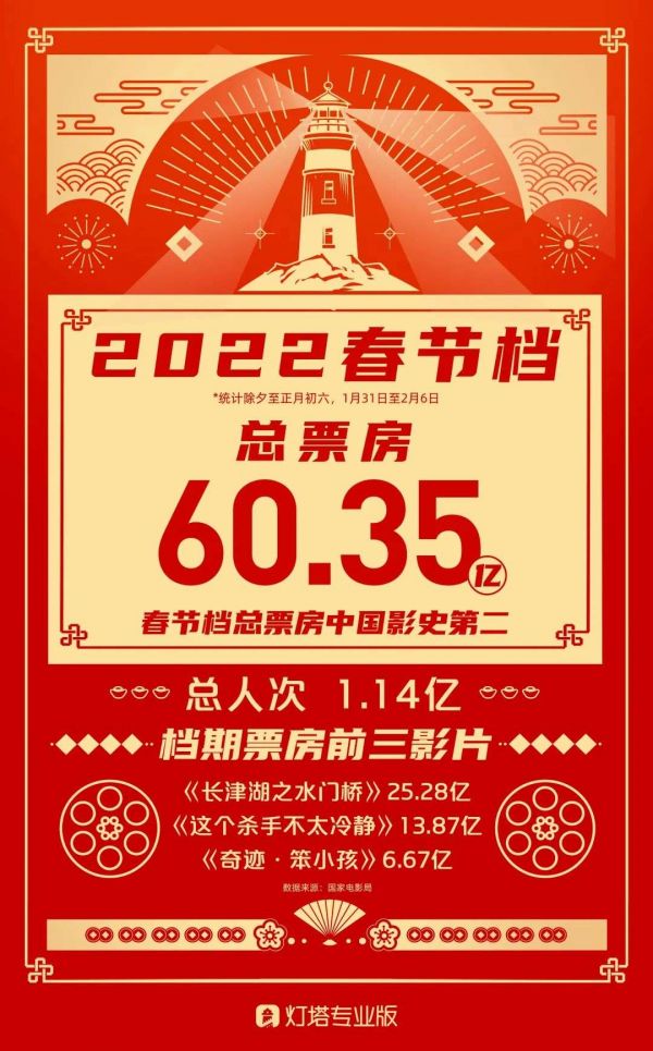 刚过去的春节档交出了7天60亿(含服务费)的答卷,票房表现仅次于去年、位居历年档期第二,基本回到了疫情前2019年(59亿)、2018年(57.7亿)的水平。