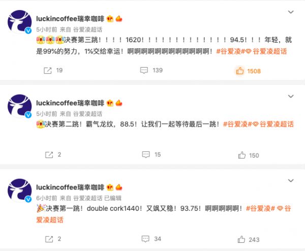 在谷爱凌夺金之后,各大品牌商纷纷发来贺电。