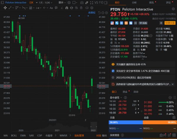 过去一年,Peloton的股价、市值宛如坐上过山车。在年初疫情肆虐之时,其市值一度飙升至近500亿美元的巅峰,但如今跌至不足百亿美元,缩水近80%。与此同时,其股价也一度跌至25美元下方,跌破发行价。不过在亚马逊、耐克有意收购的消息传出后,周一美盘时段Peloton股价直线拉升逾40%,最终收涨20.95%,迎来大反弹。