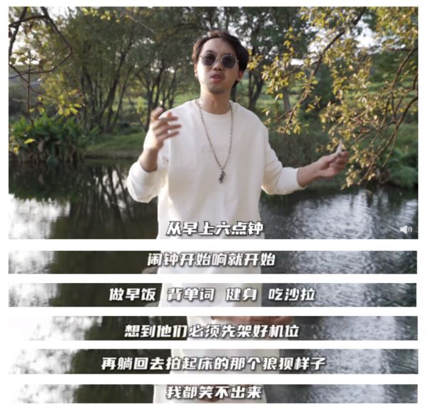 他们的视频处处可见up主精致的妆发,角落的鲜花和香薰,从早上六点开始做早饭,背单词,健身,吃沙拉......