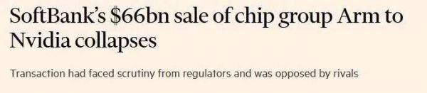 近日,根据英国媒体《金融时报》对三位业内知情人士的采访内容,我们基本可以确定在美国、英国和欧盟的监管机构对其对全球半导体行业竞争的影响表示严重担忧后,英伟达以股票+现金的方式(时值660亿美元)收购软银旗下的ARM的交易于本周一正式宣告失败。