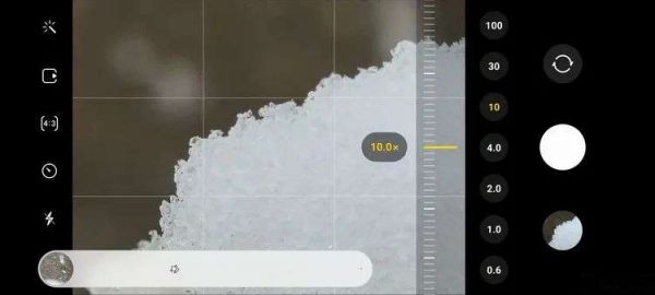 那么,如果我们使用手机的“微距镜头”,是否就能拍到雪花了呢?理论上其实是可以的。因为现在有部分机型配备的超微距镜头,的确具备30倍、40倍,甚至60倍的放大能力,并且它们的对焦结构也往往专为“紧贴着被摄物拍照”做了特别设计。