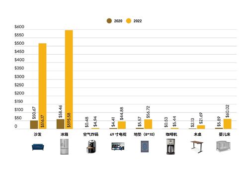 贪婪的利率:在过去的两年中,从亚洲到美国西海岸的沙发运费上涨了十倍以上;咖啡机和冰箱也是如此。这一负担如今正压在消费者头上:下表列举的八种普通家庭用品的价格同期上涨了19%至51%。