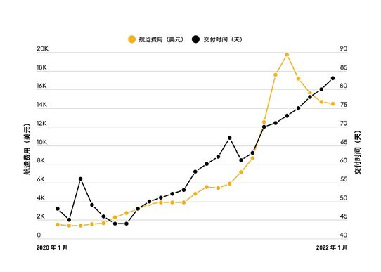 延迟的海运:跨太平洋的海运成本在去年9月达到了令人瞠目的程度——运一个40英尺集装箱要20,500美元,虽然价格现在终于开始下降了,但是等待交付的时间仍在继续延长。