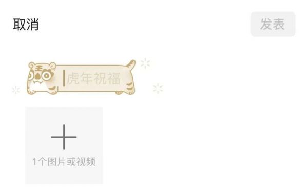 在这个入口发布的朋友圈文字会被包裹在一个小老虎的身体里,并且只能配上一张图片或视频。
