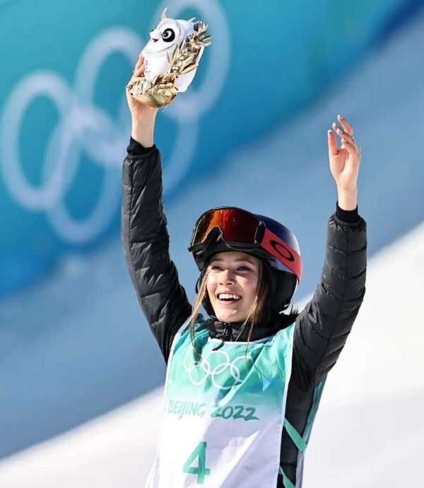 谷爱凌不仅收获了本届冬奥会的个人首枚金牌,还得到了另外的奖励——一个金色的吉祥物冰墩墩。
