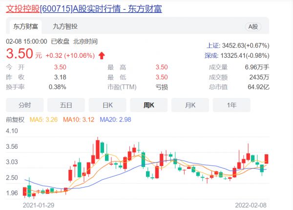 当天开盘便涨停的还有另外一只股票——文投控股(600715)。文投控股在去年6月成为北京冬奥会和冬残奥会特许经营生产商和销售商。这家公司虽然不生产冰墩墩手办和钥匙扣,但负责生产含冰墩墩元素的徽章制品和陶瓷挂饰等,并且这些徽章饰品同样面临脱销。