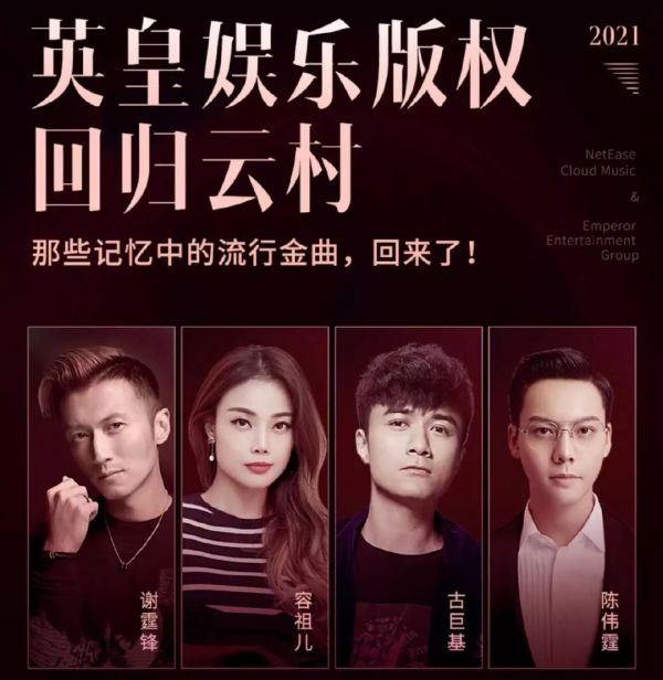 近期,网易云音乐与摩登天空、香港英皇娱乐、中国唱片集团达成了版权合作,谢霆锋、容祖儿、Twins、新裤子、痛仰、五条人等艺人及乐队的歌曲重新上架了网易云音乐。