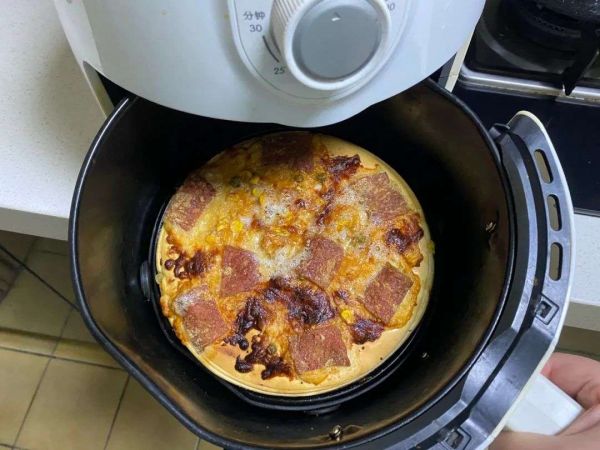 W购买了两大盒预制披萨,按照说明在空气炸锅中180度烤制8分钟,却连着烤糊了两张,“表面的青豆特别容易糊,但是饼底却没烤熟。”她只好先把披萨放在平底锅里,先把饼底煎熟,再放进空气炸锅,用低温小心翼翼地烘熟。