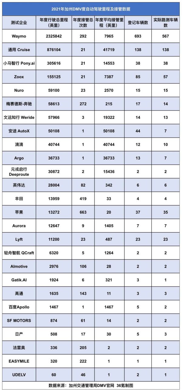 最前线|2021加州DMV自动驾驶众生相:Waymo跑最远,苹果人工接管最多