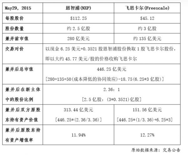 后来,2015年时恩智浦(NXP Semiconductors)宣布,以大约118亿美元的现金加股票收购飞思卡尔(Freescale Semiconductor)。