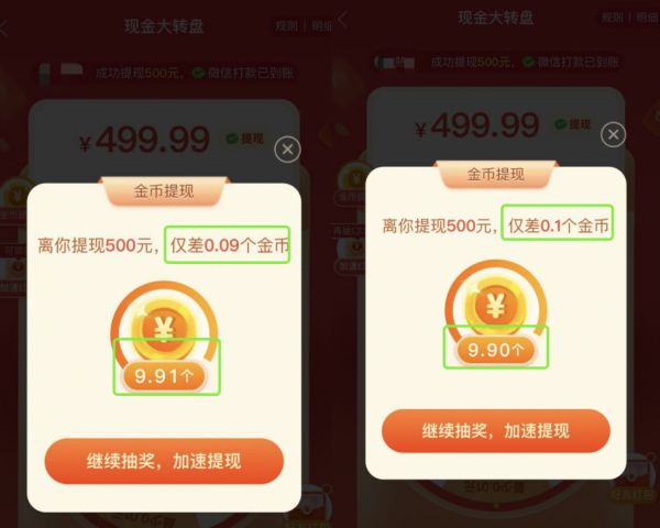 新浪科技观察发现,这两个活动模式类似,拼多多推出有一段时间了,不过对不同地区、不同用户的,活动上线时间不一。其中现金大转盘的可提现金额更高,一般为200元-800元之间,天天领现金设定在100元。