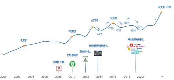 2008年前后的经济危机中,国家战略性的以现金补贴的方式拉动农村家电市场的需求,崛起的国产电视企业又吃到了“家电下乡”“以旧换新”等政策红利,借机深入拓展三四级市场,推进平板电视在三四级市场的普及,市场份额再次提升。
