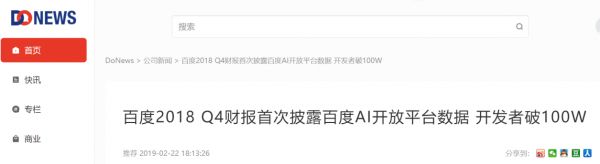 然而,在AI技术开放方面,科大讯飞与首屈一指的百度相比,可谓相形见绌。要知道,早在2018年第四季度,百度财报数据就显示,作为百度AI技术地基的百度大脑相关数据惊人。其中,百度大脑AI开放平台开发者数量达130万。