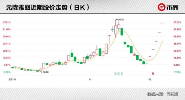 之后,元隆雅图股价开始飙升。2021年12月31日,其收盘价为19.7元/股。到2022年1月14日,股价最高触及30.75元/股,创下历史新高,涨幅超56%。