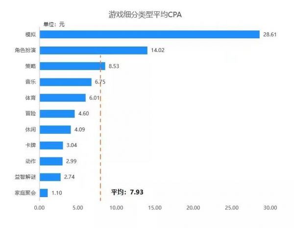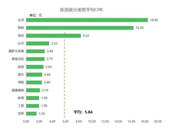 而在CPA方面,受关键词流行度和市场竞争干扰,不同类别的App的CPA表现有着较大差别。