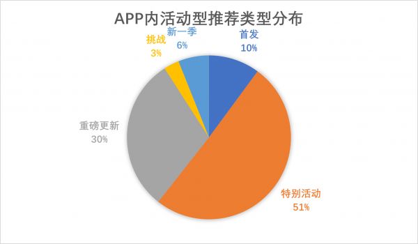 在得到推荐的App内活动中,特别活动与重磅更新占据主导地位,更容易受到苹果编辑的推荐。同时,有超过60%的活动与App Store的春节专题相关,为活动附加了本地化的属性,而这一点也可以在日后被更多人在App内活动的设置上借鉴。
