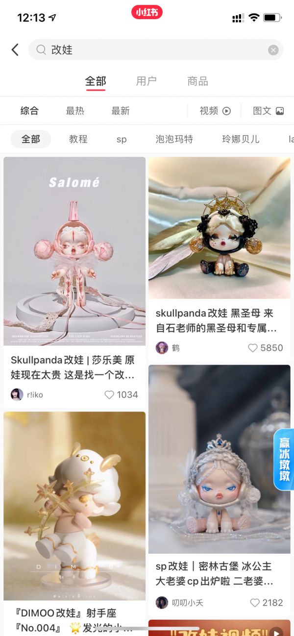 而盲盒改娃,则已经成为盲盒圈势不可挡的趋势。最初的盲盒改娃针对的几乎都是抽到的“雷款”,于是有玩家将其回炉重造,“煮娃”破坏后进行再涂装、修饰,使 “雷娃”符合大众审美。但随着玩家对颜值与个性的追求,盲盒圈的改娃赛道越来越内卷,溢价也越来越高。在社交网络平台,泡泡玛特的许多当家 IP,如Molly、DIMOO,skullpanda等都成改娃的主流。