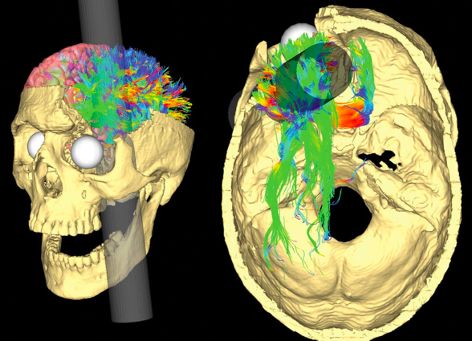 2012 年,加州大学洛杉矶分校神经影像实验室的研究人员重新分析了前人的研究图像,使用 MRI 和扩散成像数据来推断脑损伤。 认为皮质损伤仅限于左脑半球,而白质损伤则发生在半球内和半球间(累及两个半球) 。损害仅限于左侧额叶,除了 4% 的大脑皮层,还有 11% 的额叶白质。白质束的损伤包括钩状束,扣带束和上纵束。