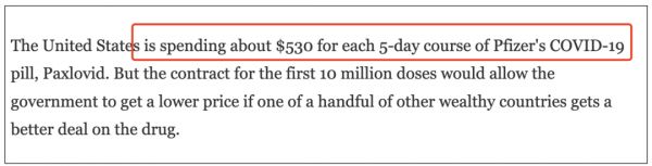 Paxlovid 售卖给美国政府的定价情况图源:参考资料 2