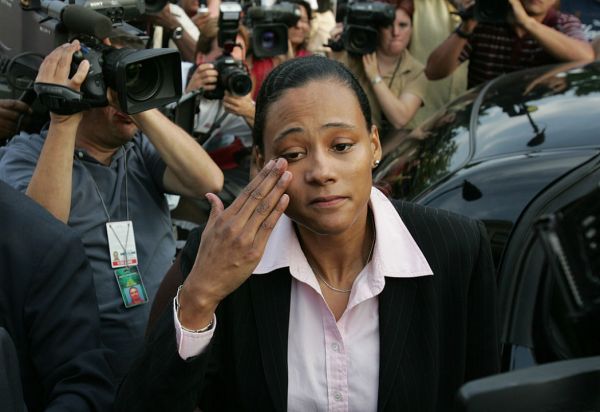 2007 年,曾经的「女飞人」琼斯因瞒报自己使用四氢孕三烯酮及在此事件中做出虚假供词,被判监禁 6 个月,并被剥夺多块奖牌(图源:AFP)