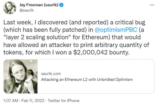 https://optimismpbc.medium.com/disclosure-fixing-a-critical-bug-in-optimisms-geth-fork-a836ebdf7c94